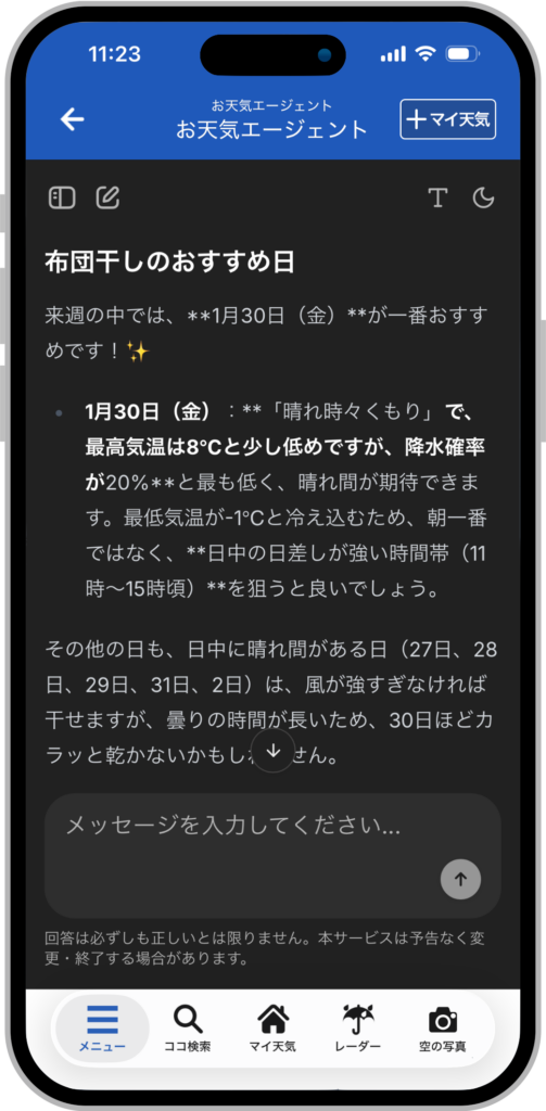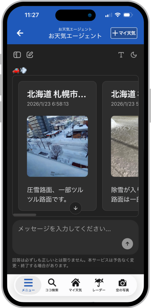 ウェザーニューズが対話型AI「お天気エージェント」を全ユーザーに無料開放(外部)