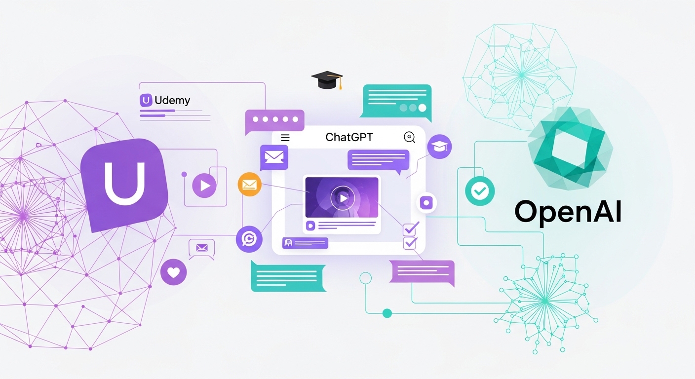 Udemy(Nasdaq: UDMY)は2026年2月11日、OpenAIとの新たな統合を発表した。ChatGPT内のアプリを通じて、Udemyのスキルコンテンツを直接提供する。この統合により、9万人の講師による29万以上のコースがChatGPTの対話型AI機能と組み合わされる。