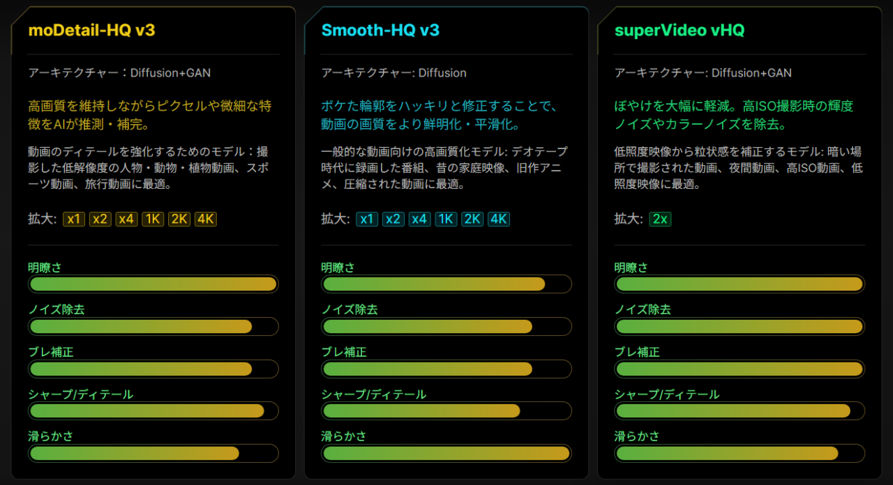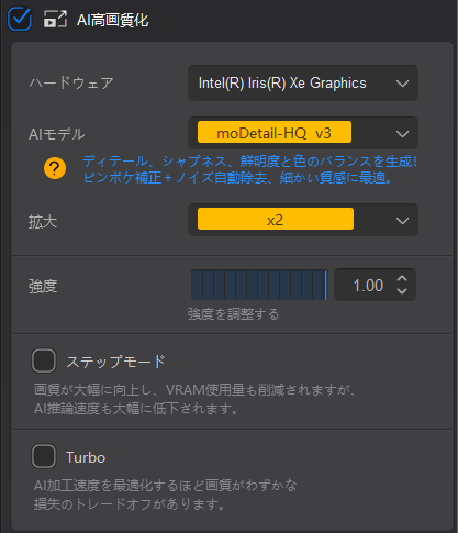 • AI高画質化(複数モデル)