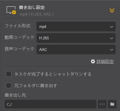 • 書き出し設定
