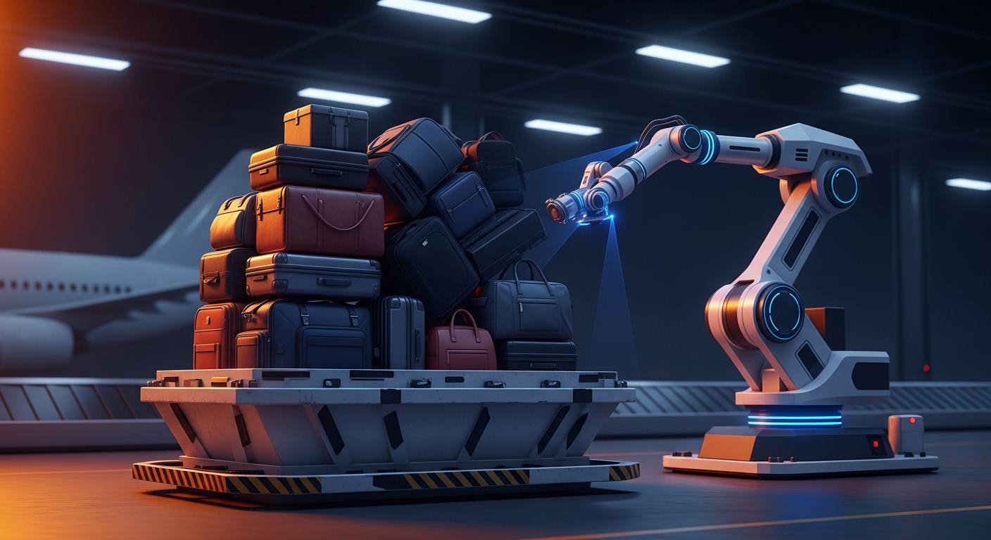空港で荷物を預けた瞬間から、その先の世界はほとんど誰も見たことがない。多種多様なスーツケースをコンテナに積み込む作業は、じつはロボット工学が長年解けずにいた「最後の難問」のひとつだ。