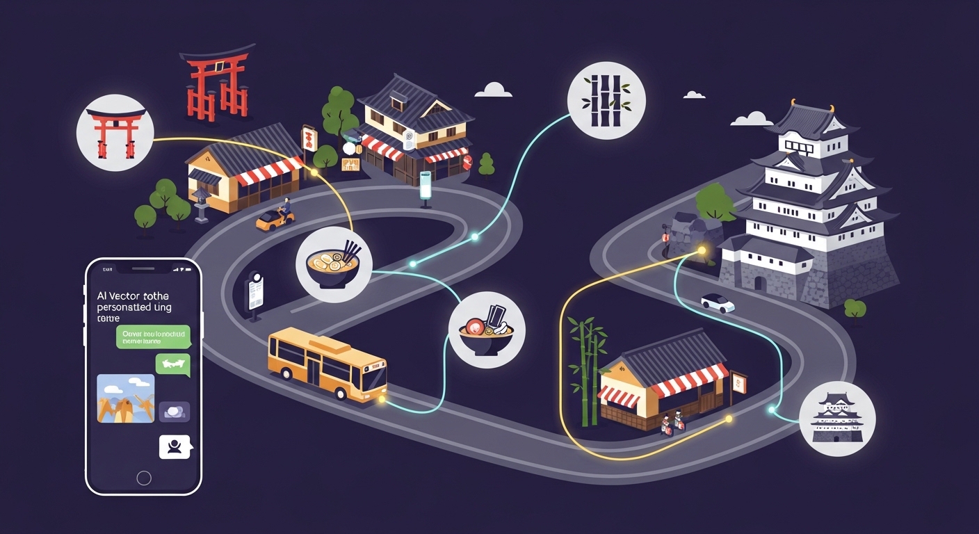 観光客が特定のスポットだけでなく、地域全体を周遊するよう誘導することを目的としたAIサービスの形態。単なる案内にとどまらず、移動手段・体験コンテンツ・購買行動までを一体で設計する点が特徴だ。