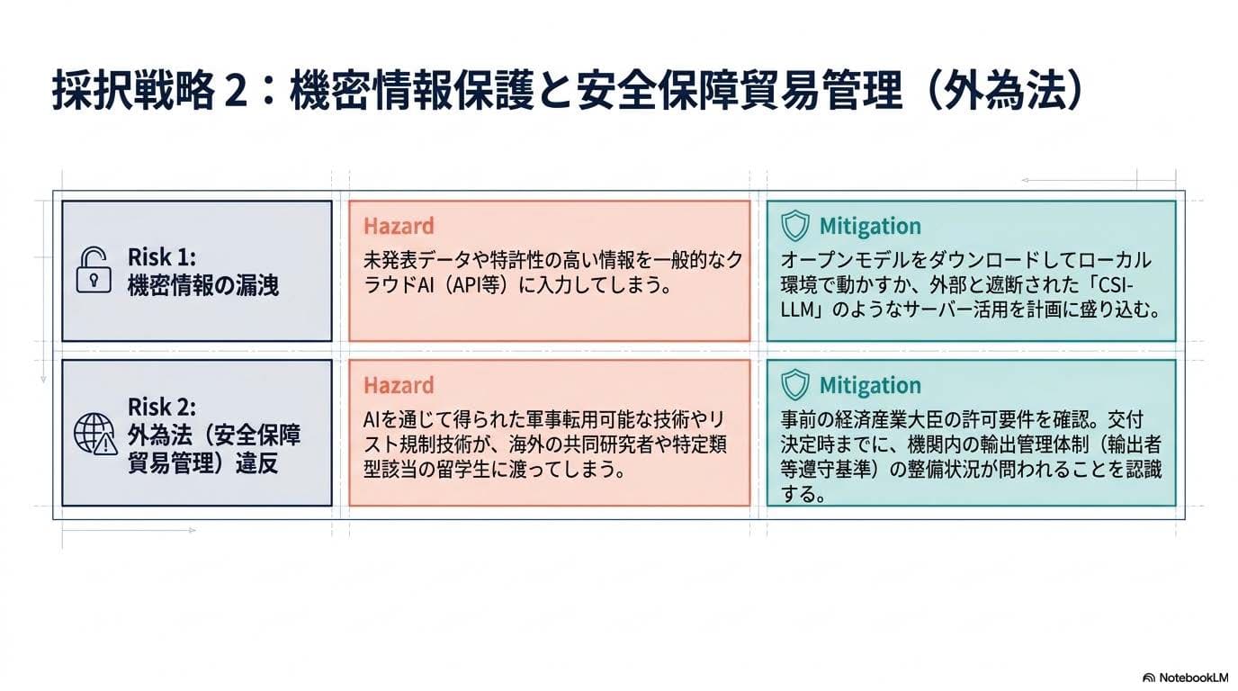 速報ニュースでは「500万円で計算資源やAPI利用料まで賄うのはタイト」「研究期間が実質半年ほどで短い」という課題にも触れました。この制約のなかで採択を勝ち取るには、申請書の段階で「お金とリスクの設計」が一通りできていると示す必要があります。その作法が3つあります。