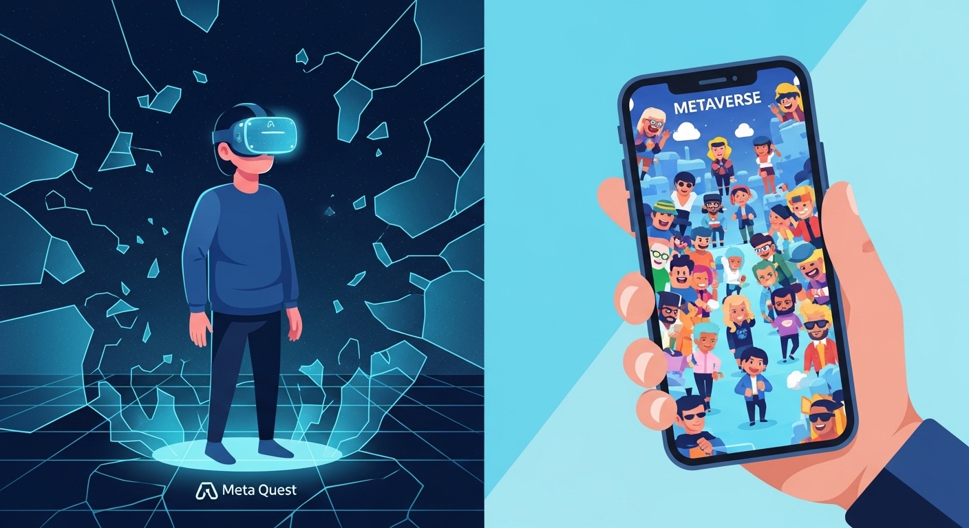 しかし現実は、スマートフォンを持った子どもたちが答えを出してしまいました。ヘッドセットをわざわざ被らなくても、ポケットの中のデバイスで十分に「誰かと繋がれる場所」は作れる——そのシンプルな事実が、数百億ドル規模の戦略を静かに塗り替えていきました。